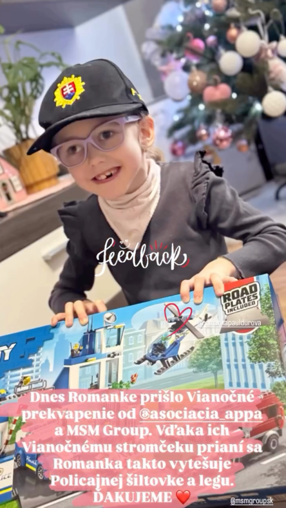 Úprimne ďakujeme spoločnosti MSM GROUP za to, že si do tejto milej vianočnej aktivity vybrala práve rodiny z Klubu APPA. Vážíme si ich veľkorysosť, ľudskosť a podporu, ktorá sa premenila na množstvo splnených prianí a žiarivých detských úsmevov.